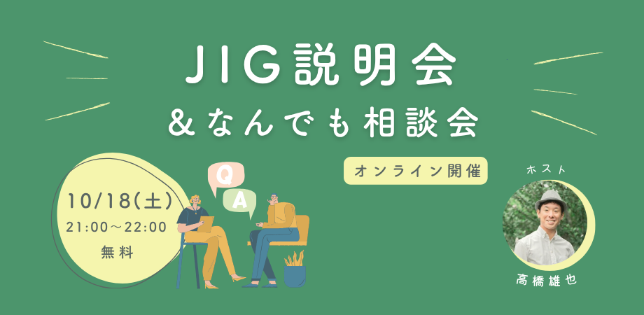そんな方のために、JIGの発起人 高橋雄也 がオンラインで JIGの概要を丁寧に説明 する時間をご用意しました。