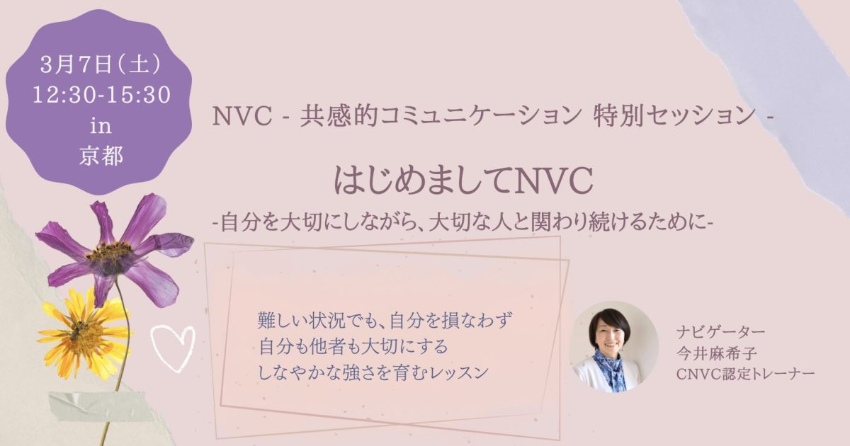 【京都3/7】はじめましてNVC - 自分を大切にしながら、大切な人と関わり続けるために -〔今井麻希子〕