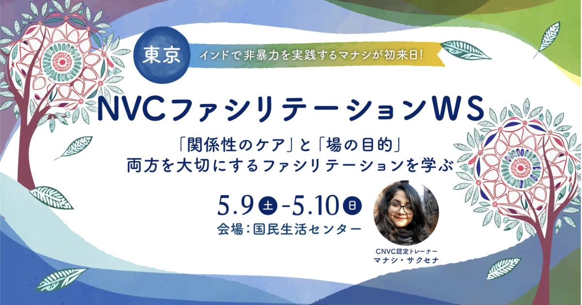 【相模原市5/9-】NVCファシリテーションWS ~「関係性のケア」と「場の目的」両方を大切するファシリテーションを学ぶ〔CNVC認定トレーナー: マナシ・サクセナ , シルバーマン恵子〕