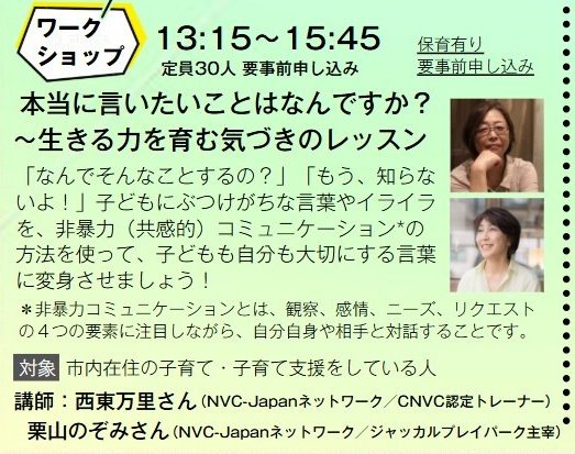 講師:西東万里(CNVC認定トレーナー)/栗山のぞみ(ジャッカルプレイパーク主宰)